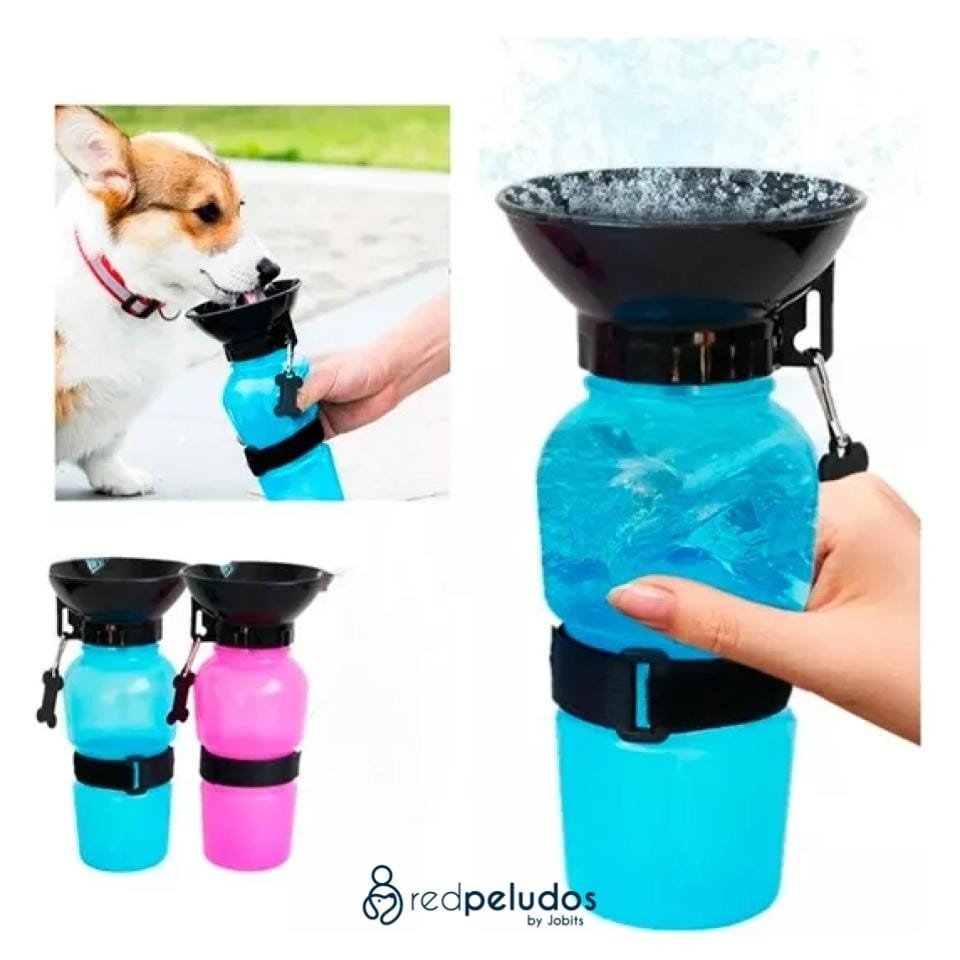 Bebedero portátil de 500 ml con botón dispensador. Ideal para paseos y viajes. Sin derrames, fácil de usar y libre de BPA.