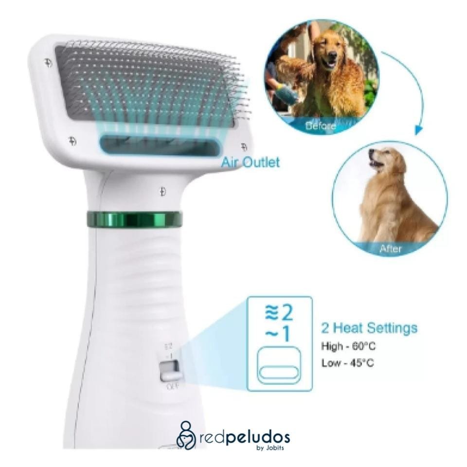 Facilita el cuidado de tu mascota con este cepillo secador 2 en 1. Diseñado para perros y gatos, este dispositivo combina un potente pero silencioso secador de aire con cerdas suaves que desenredan el pelaje mientras lo secas. Ideal para después del baño, evita el estrés de usar un secador tradicional y mejora la higiene diaria.