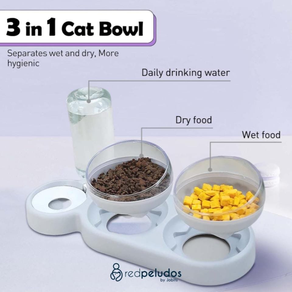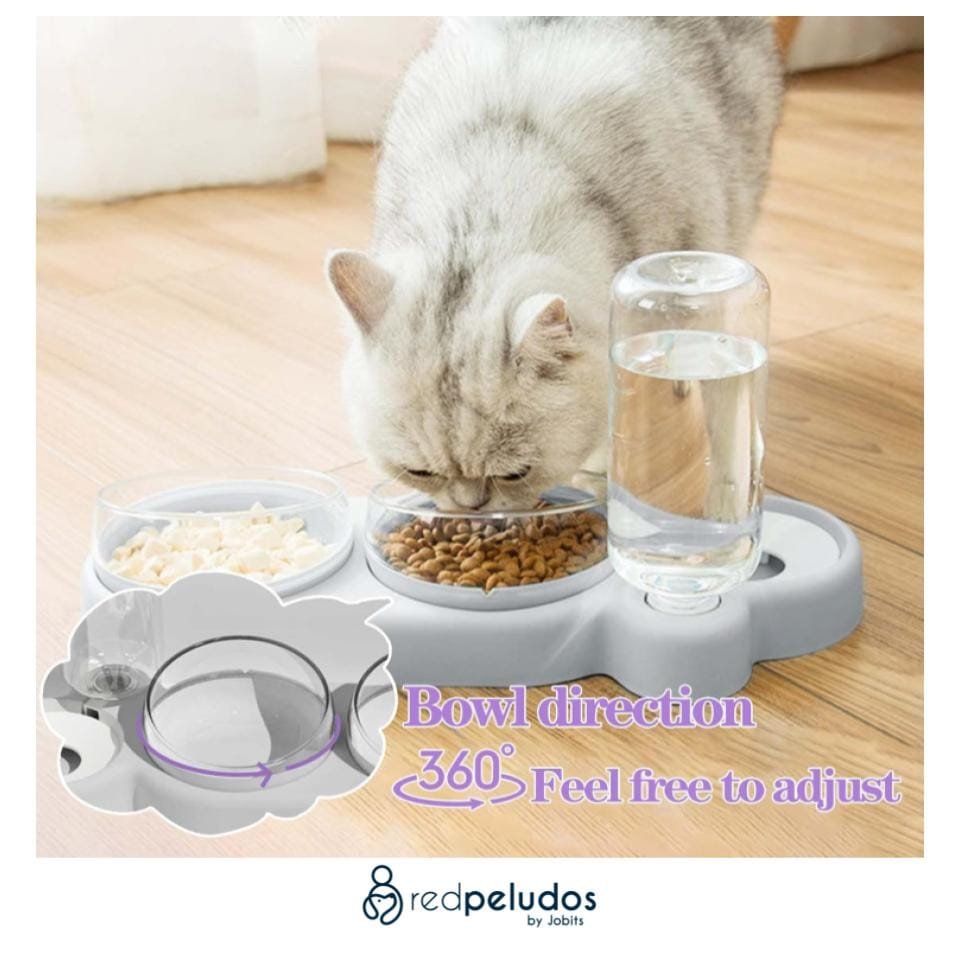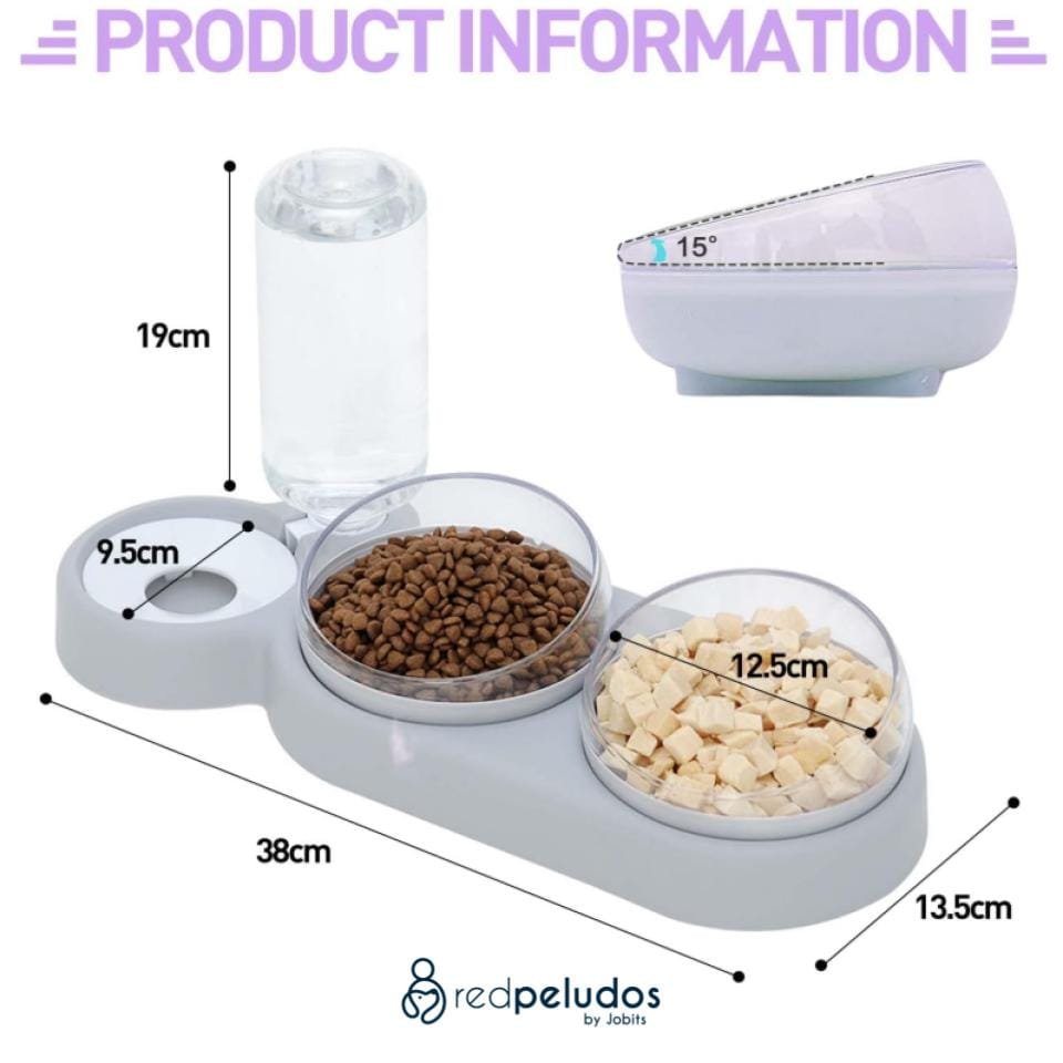 Dispensador Automático de Alimento y Agua para Mascotas – Cuenco Inclinado Antivómitos, 2 en 1